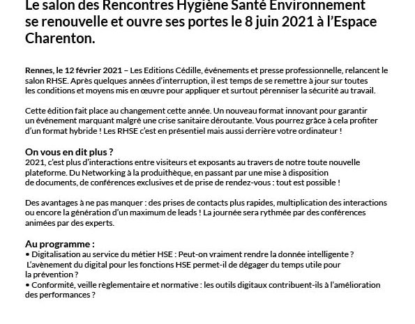 Les Rencontres HSE est le salon incontournable pour tous les professionnels du domaine Hygiène, Santé, Sécurité et Environnement. Un véritable carrefour d’échanges, convivial, privilégié et incontournable, qui permet aux acteurs de la filière HSE et à tous les services concernés,…